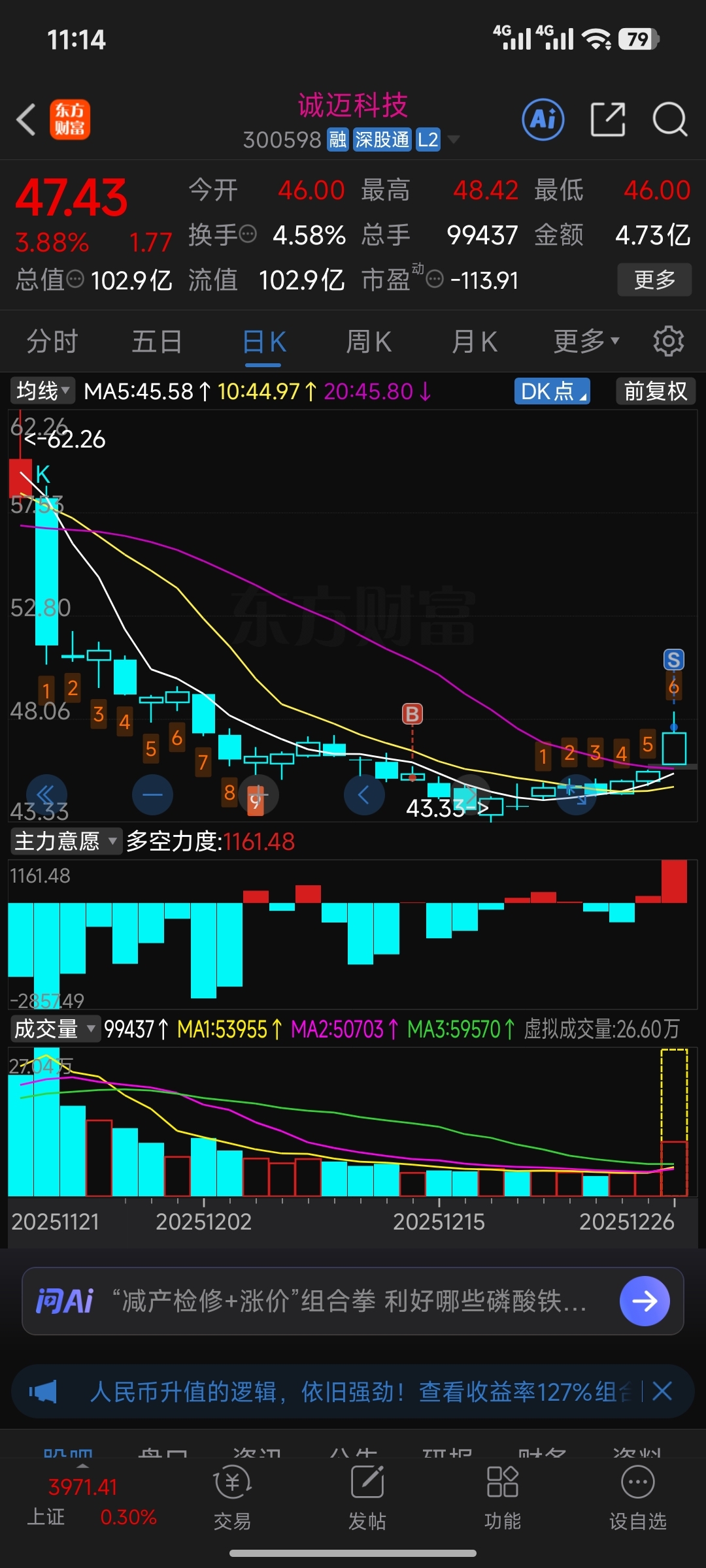 $诚迈科技(SZ300598)$ 我卖了,主力才会拉,成全大家