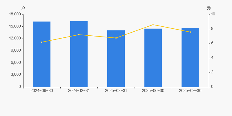 截至2025年9月30日,公司最新总股本为3.58亿股,其中流通股本为2.12亿股。户均持有流通股数量由上期的1.47万股下降至1.45万股,户均流通市值11.02万元。
