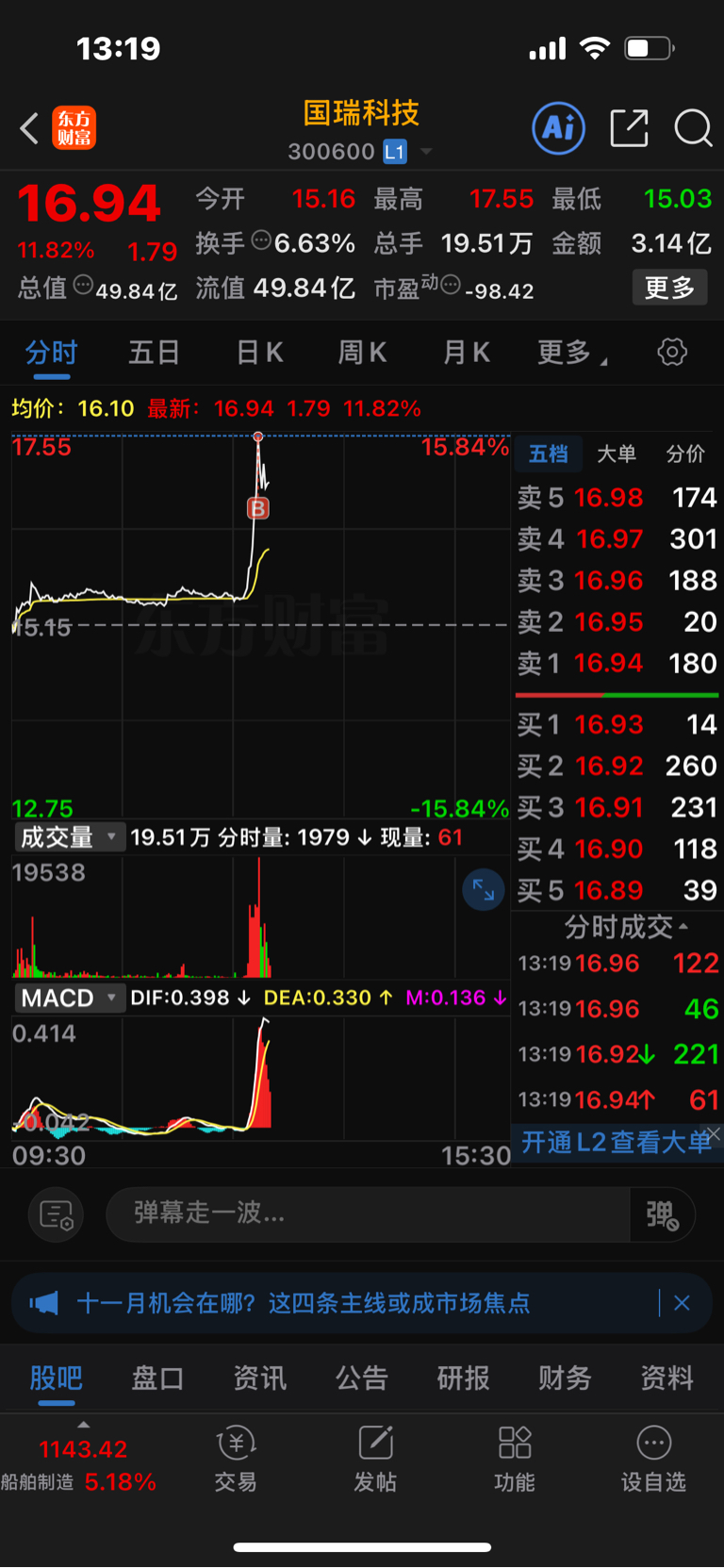 温馨提示: 1.根据《证券法》规定,禁止编造、传播虚假信息或者误导性信息,扰乱证券市场;2.用户在本社区发表的所有资料、言论等仅代表个人观点,与本网站立场无关,不对您构成任何投资建议。用户应基于自己的独立判断,自行决定证券投资并承担相应风险。《东方财富社区管理规定》