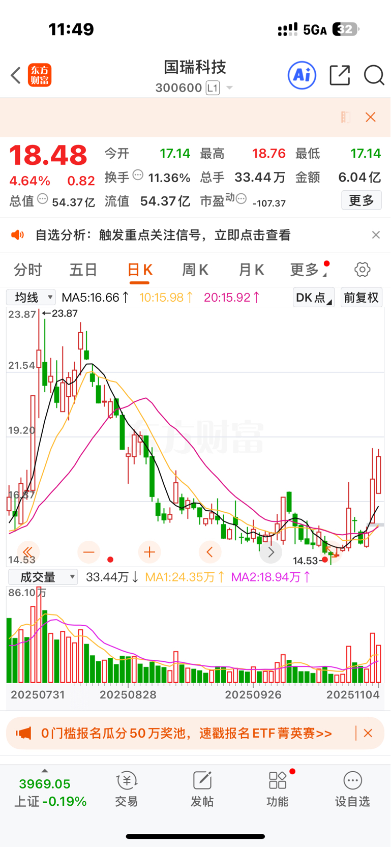 $国瑞科技(SZ300600)$ 两日增长接近百分之二十,抄底大概率可以成功