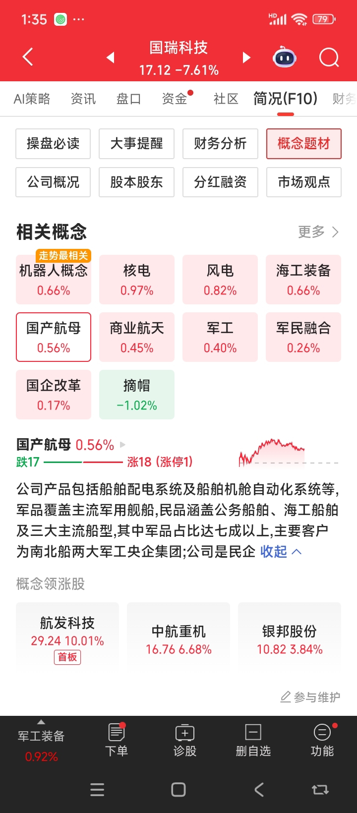 $国瑞科技(SZ300600)$ 国瑞同花顺有航母概念,东财还没有,助力添加