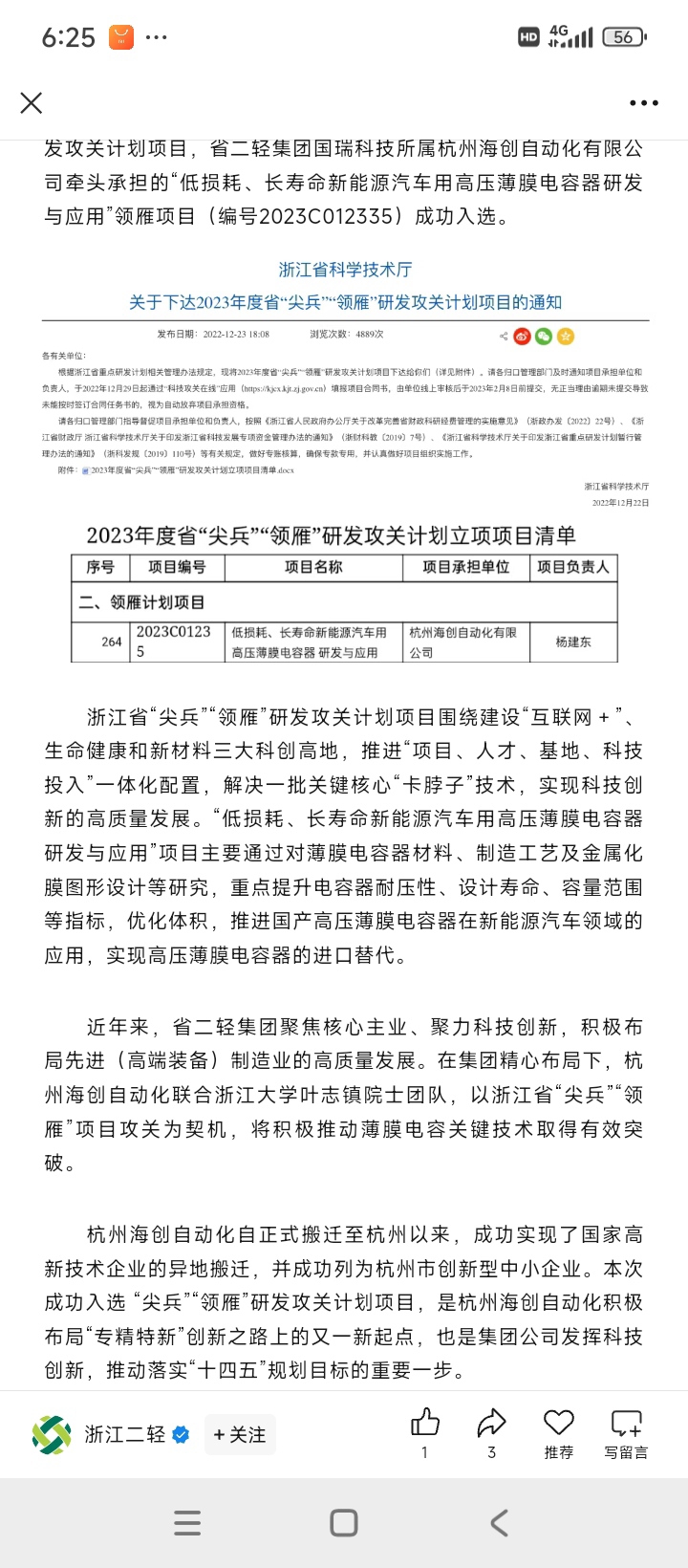 $国瑞科技(SZ300600)$ 三相交流薄膜电容器广泛应用于电力电子设备中,作滤波用,在大功率UPS,变频器等设备中作交流滤波。省二轻集团国瑞科技所属杭州海创自动化有限公司牵头承担的“低损耗、长寿命新能源汽车用高压薄膜电容器研发与应用”领雁项目,助力添加电力设备,新能源车概念