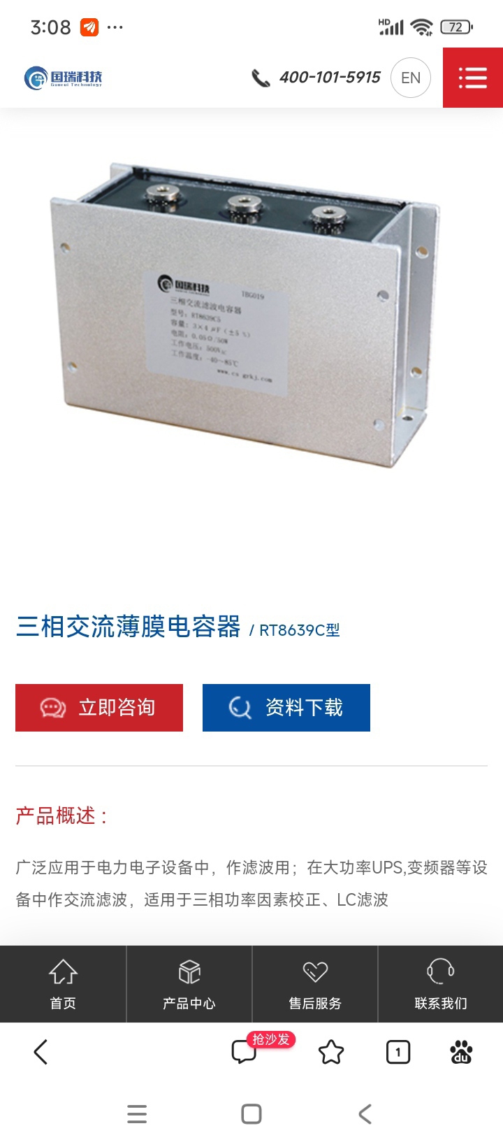 三相交流薄膜电容器广泛应用于电力电子设备中,作滤波用,在大功率UPS,变频器等设