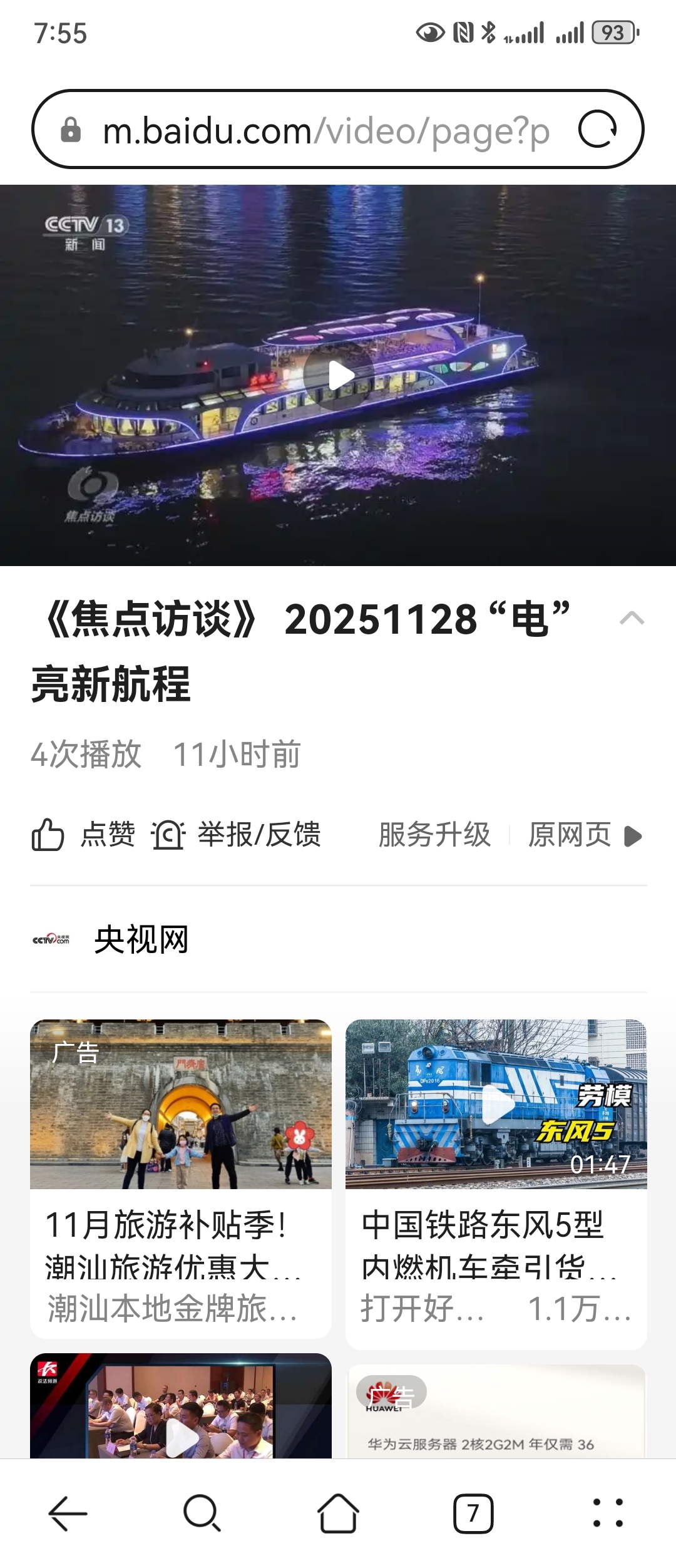 电动船舶概念龙头。11.28日《焦点访谈》专门一期讲述内河航道船舶电动化!具有十