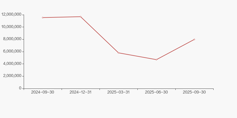 截至2025年9月30日,公司最新总股本为11.17亿股,其中流通股本为9亿股。户均持有流通股数量由上期的1.46万股下降至1.42万股,户均流通市值23.84万元。