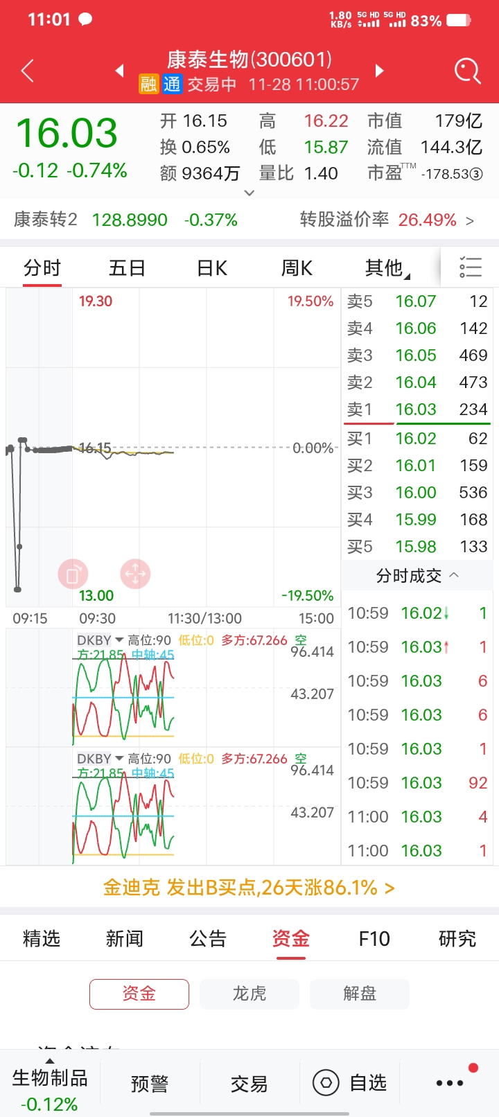 $康泰生物(SZ300601)$ 今天的机构完全控盘了啊,k线走直线高低就是几分钱,坚决不给散户买入或做T的机会了啊,散户卖出后直接被机构买入了啊,机构疯狂吸等了啊!!!