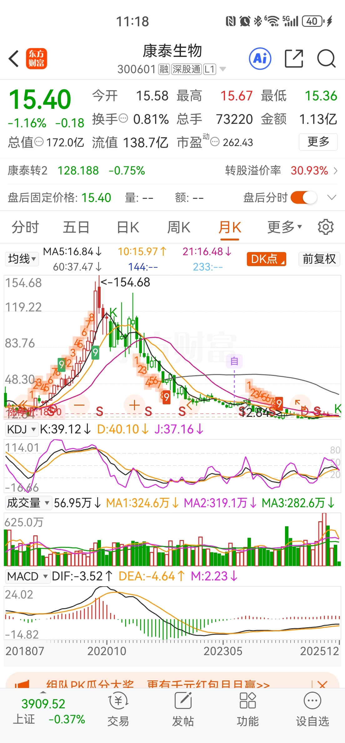$康泰生物(SZ300601)$ 关注的时候28块左右,这要是买进去了牛市跌一倍啊……太可怕了吧