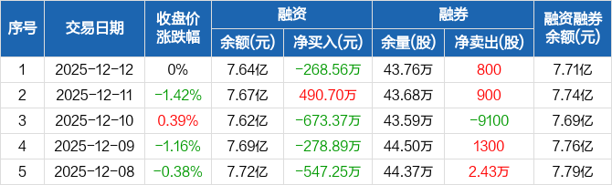 康泰生物:融资净偿还268.56万元,融资余额7.64亿元(12-12)