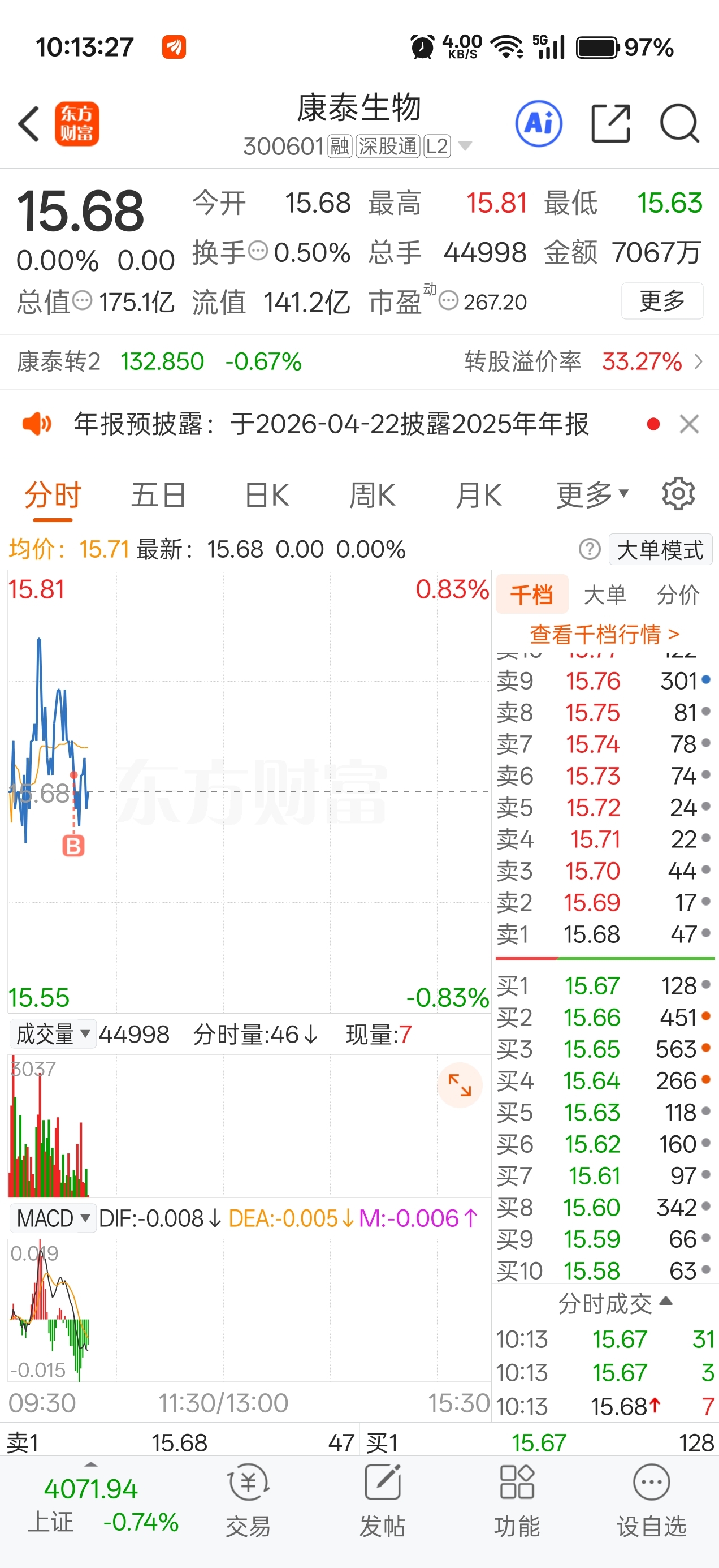 $康泰生物(SZ300601)$ 我c,果然买多少跌什么,牛逼