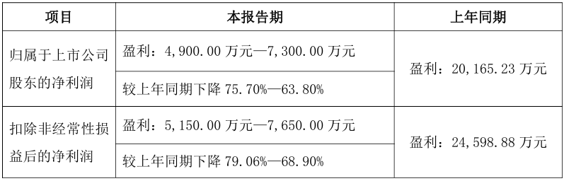 1月29日,康泰生物发布业绩预告,预计2025年度归母净利润将为4900万元至7300万元,较上年同期下降75.70%-63.80%。预计2025年度扣非净利润将为5150万元至7650万元,较上年同期下降79.06%-68.90%。预计非经常性损益对净利润的影响金额约为-350万元至-250万元,上年同期为-4434万元。
