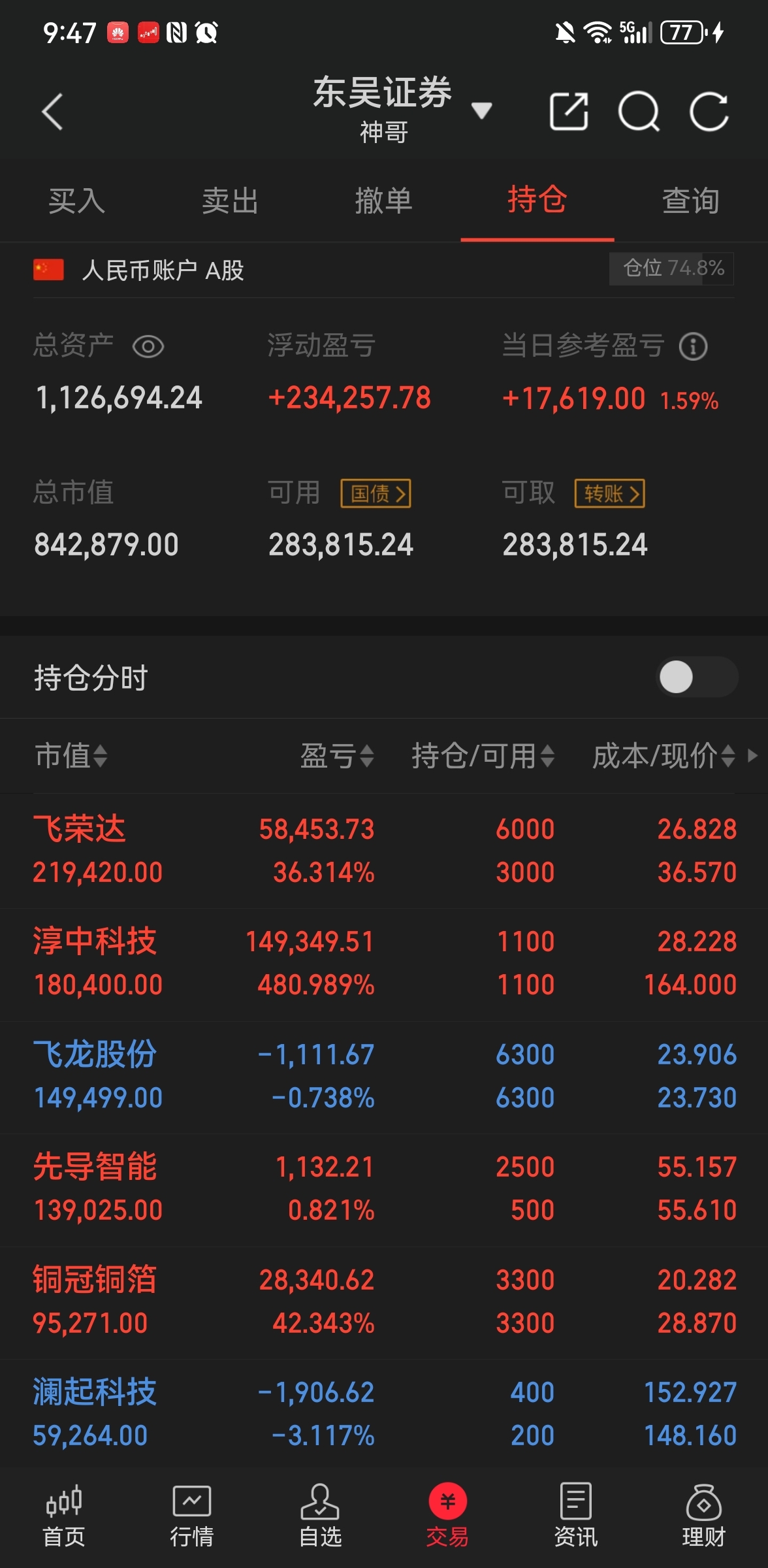 没有想象那么恐慌,我认为不可能像.4.7号那样大跌。今天开盘果断加仓了飞荣达,先导智能,澜起科技。拉起来后分批高抛了。$飞荣达(SZ300602)$ $澜起科技(SH688008)$ $先导智能(SZ300450)$