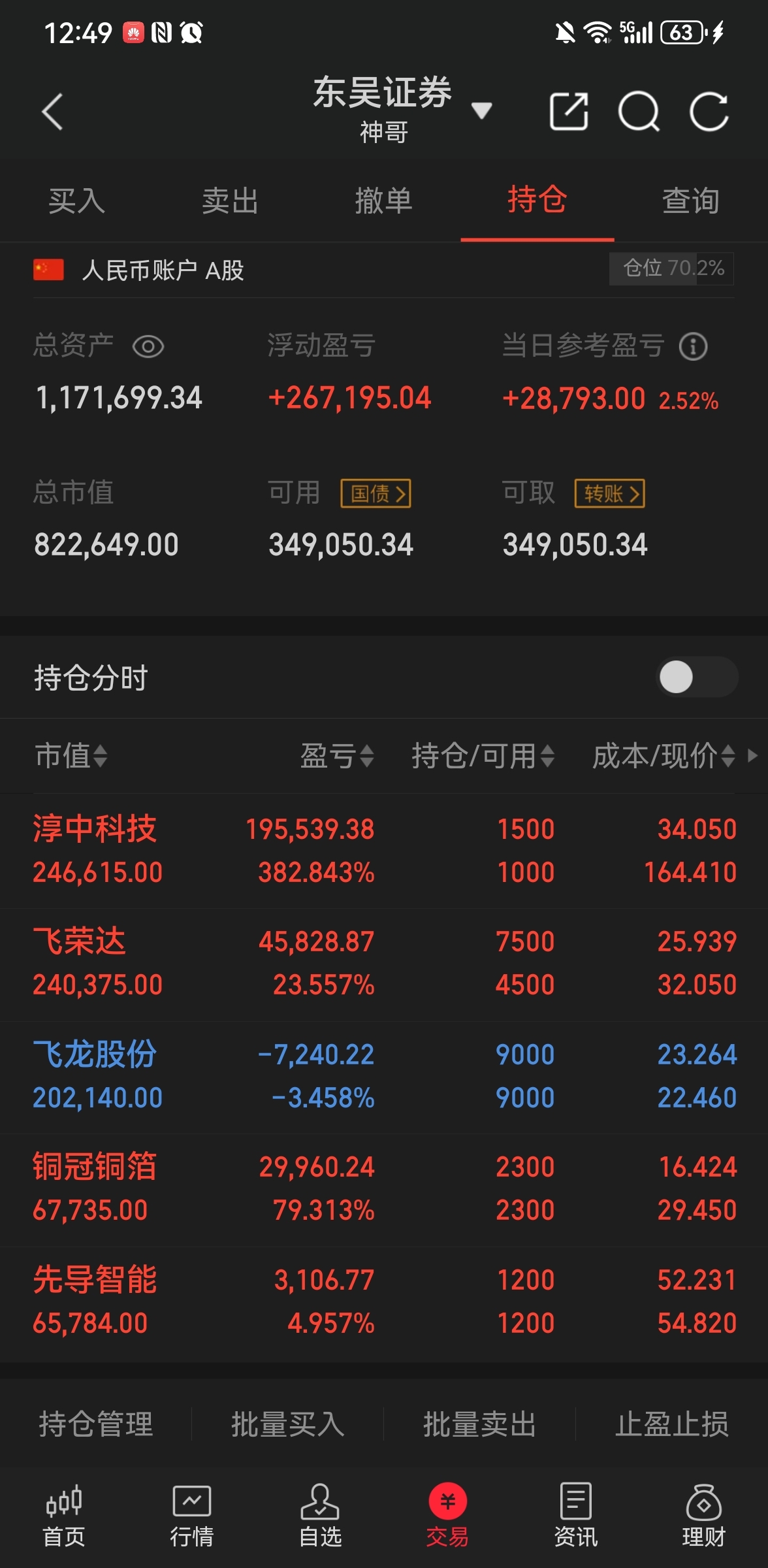 继续高抛低吸飞荣达,淳中,维持底仓不变,不存在卖飞$飞荣达(SZ300602)$ $淳中科技(SH603516)$