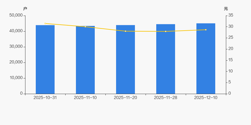 截至2025年12月10日,公司最新总股本为5.82亿股,其中流通股本为3.95亿股。户均持有流通股数量由上期的8878股下降至8774股,户均流通市值25.16万元。