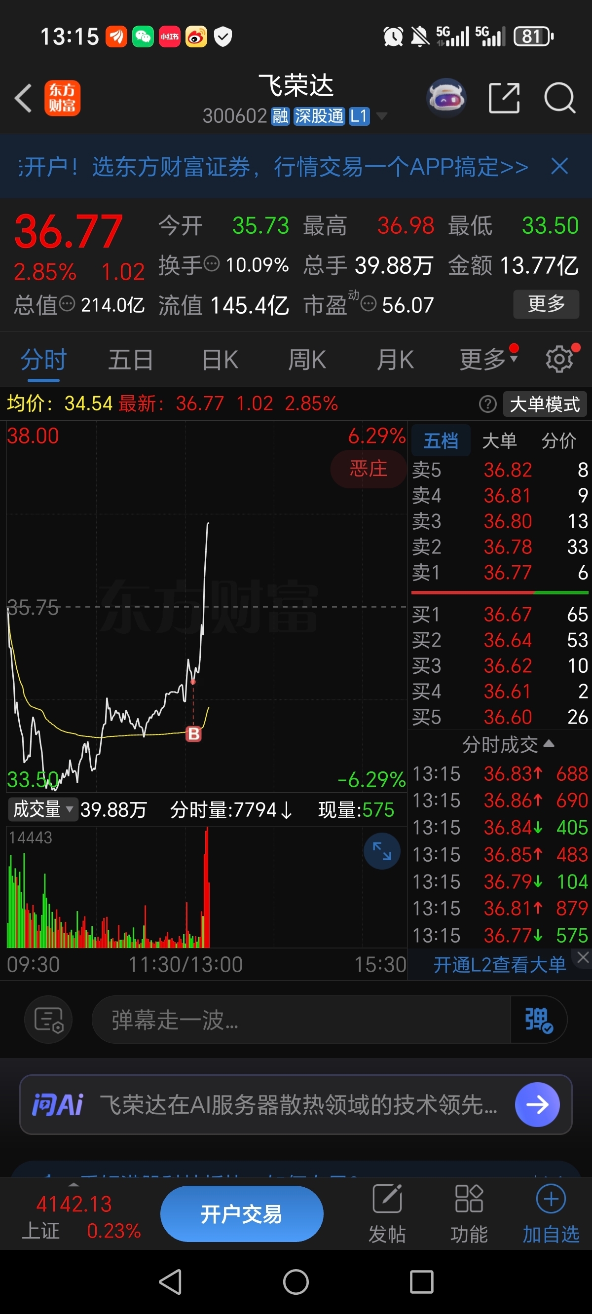34.81水下低吸介入$飞荣达(SZ300602)$