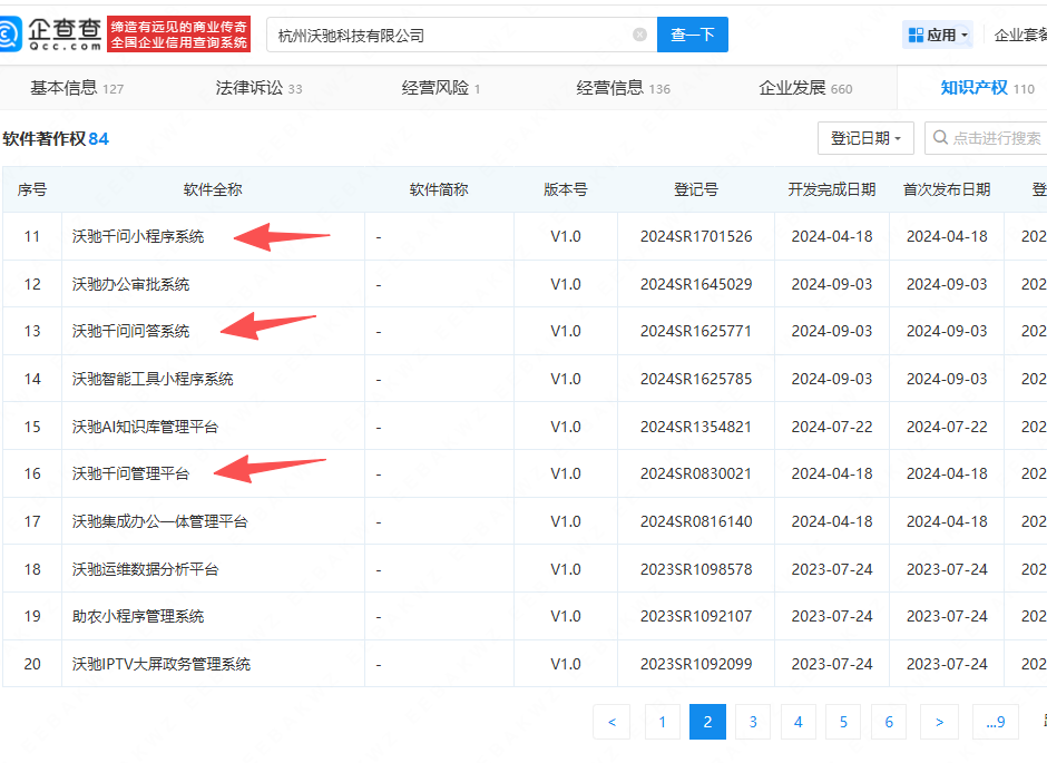 子公司杭州沃驰科技有限公司,匹配了“沃驰千问大模型”。。。