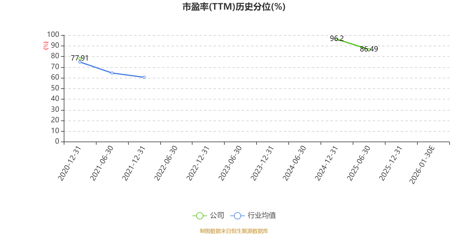 市盈率、市净率为负时,不显示当期分位数,会导致折线图中断。