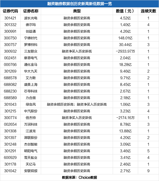 9月24日沪深两市共有188只股票两融数据创历史新高/新低,部分数据如下: