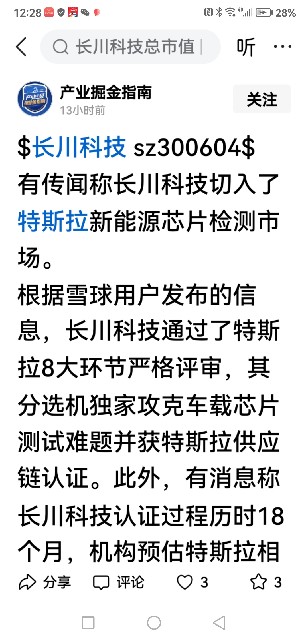 $长川科技(SZ300604)$ 长川科技进入特斯拉芯片,股友们自辩真假