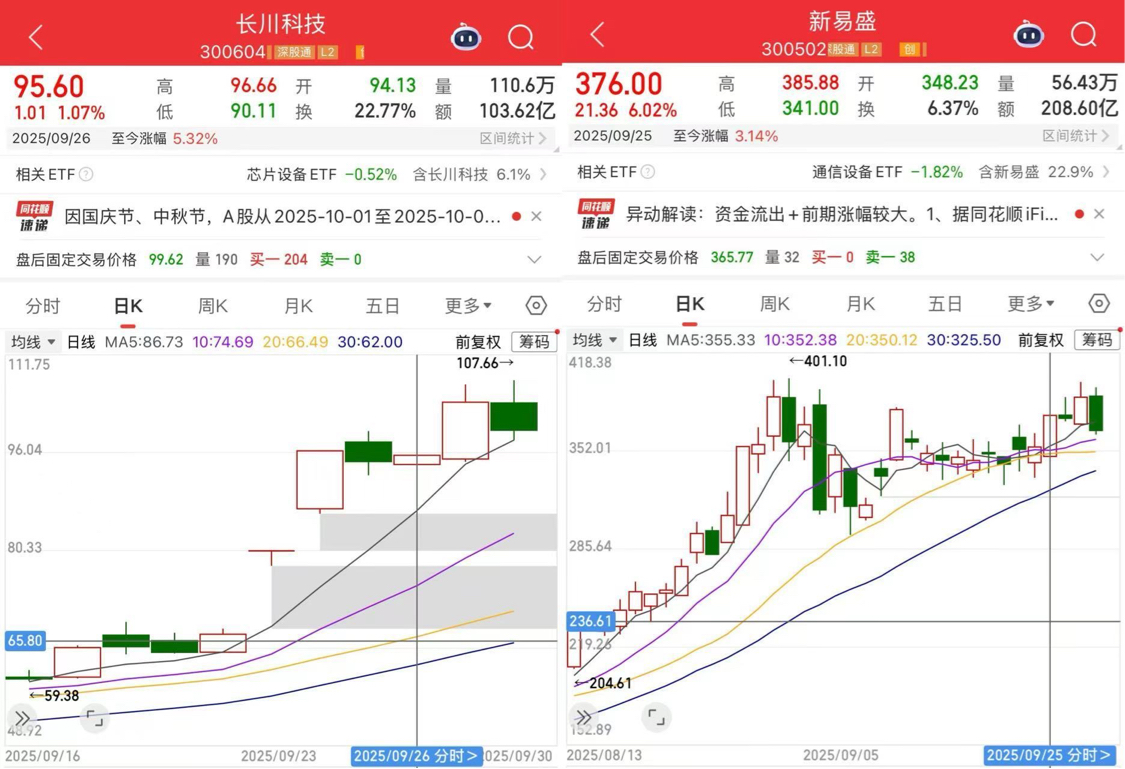 底层逻辑盘中研究明白了,其实周四在关注完新易盛后盘中我就已经备选周五可能调整时关注长川科技,因为同样的底层逻辑+中期逻辑不可证伪下,新易盛周四五大跌行情都还连续大幅冲高让交易者安全完成取关,有了成功案例接下来就是“复制”。