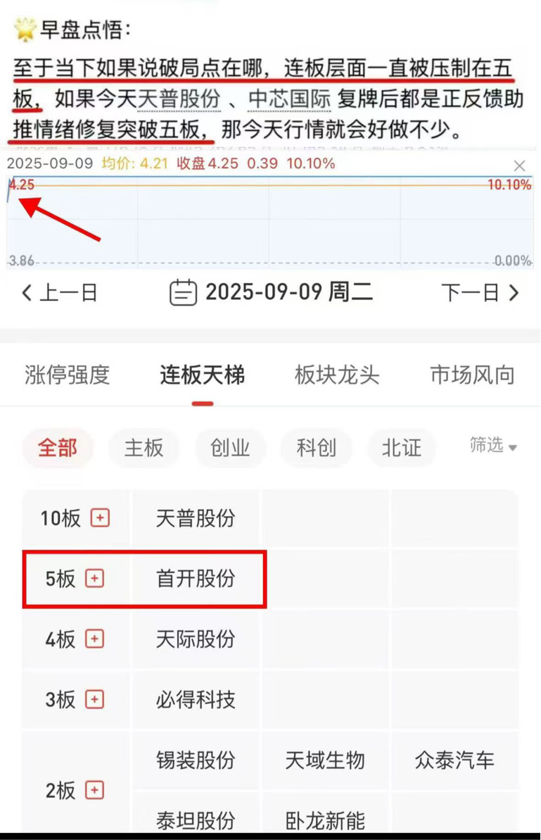 拓高者优先最核心的点在于可以带动板块甚至市场打出新高度,也就是我们常说的破局,或者说突破高度/空间压制,比如在826以后除开天普股份 连续一字板高度,我们会发现正常的换手连板里没有出现过五板高度,中间市场从天普股份到德创环保 都是通过开局就连续一字板的方式顶高度,最后德创六板即天地跌停,其他各阶段高标宏裕包材 、安正时尚 、兆新股份 、剑桥科技 、开普云 都是断板于4-5板位置,没办法有效换手拓高。