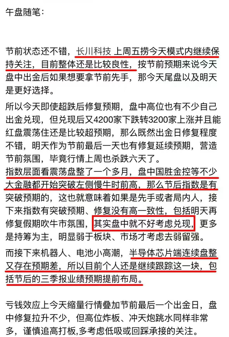 上周午盘也公开区稳定军心+明确指数要走突破+先手盘中不好考虑兑现乱掉的劝诫+继续看好半导体芯片午后回流,现在回看也是全部应验,也算是节前公开区发点小福利了