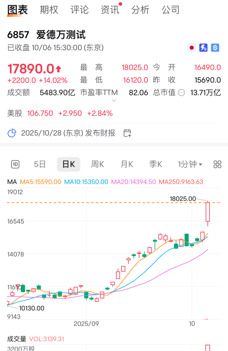 $长川科技(SZ300604)$ 爱德万大涨14%
