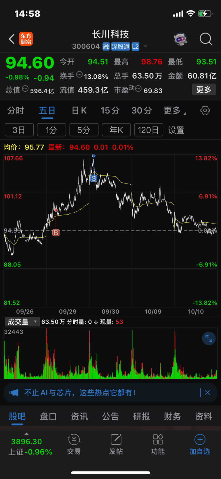 $长川科技(SZ300604)$ 尾盘竞价挂单了。进场。