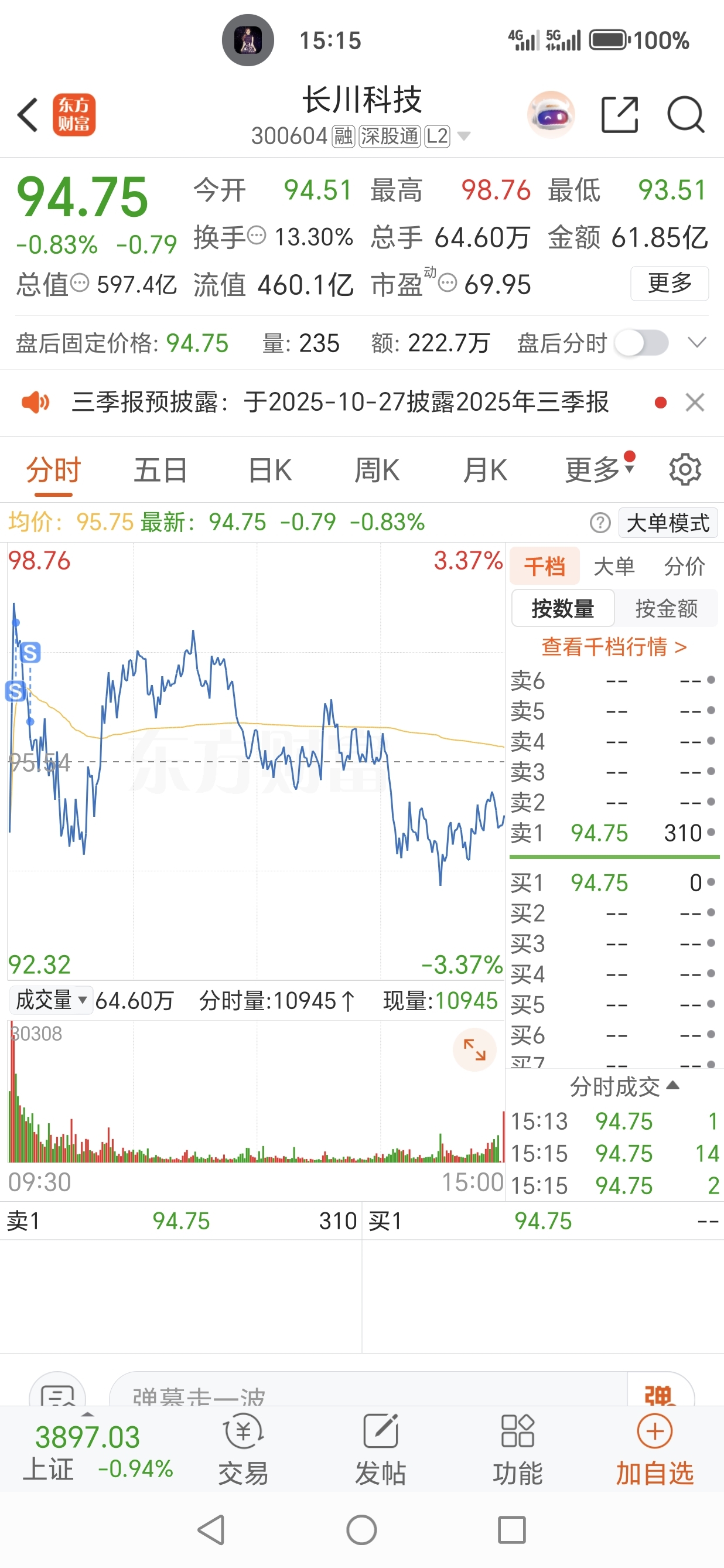 $长川科技(SZ300604)$ 幸好红盘跑了