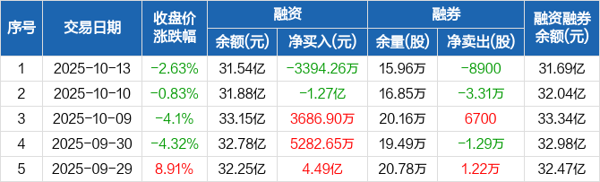 长川科技:融资净偿还3394.26万元,融资余额31.54亿元(10-13)