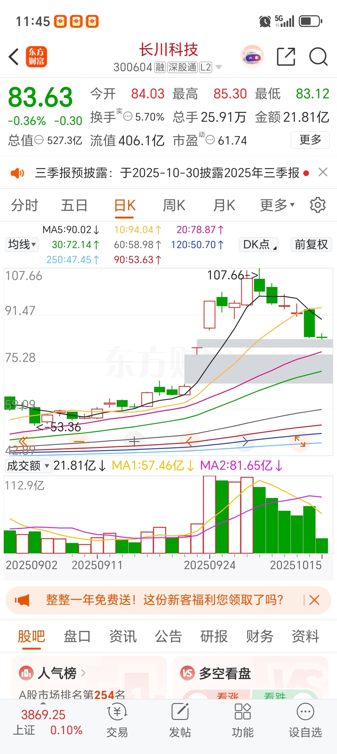 $长川科技(SZ300604)$ 今天缩量走成这样,明天又废。