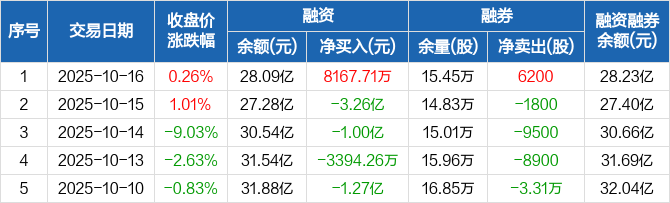 长川科技:融资净买入8167.71万元,融资余额28.09亿元(10-16)