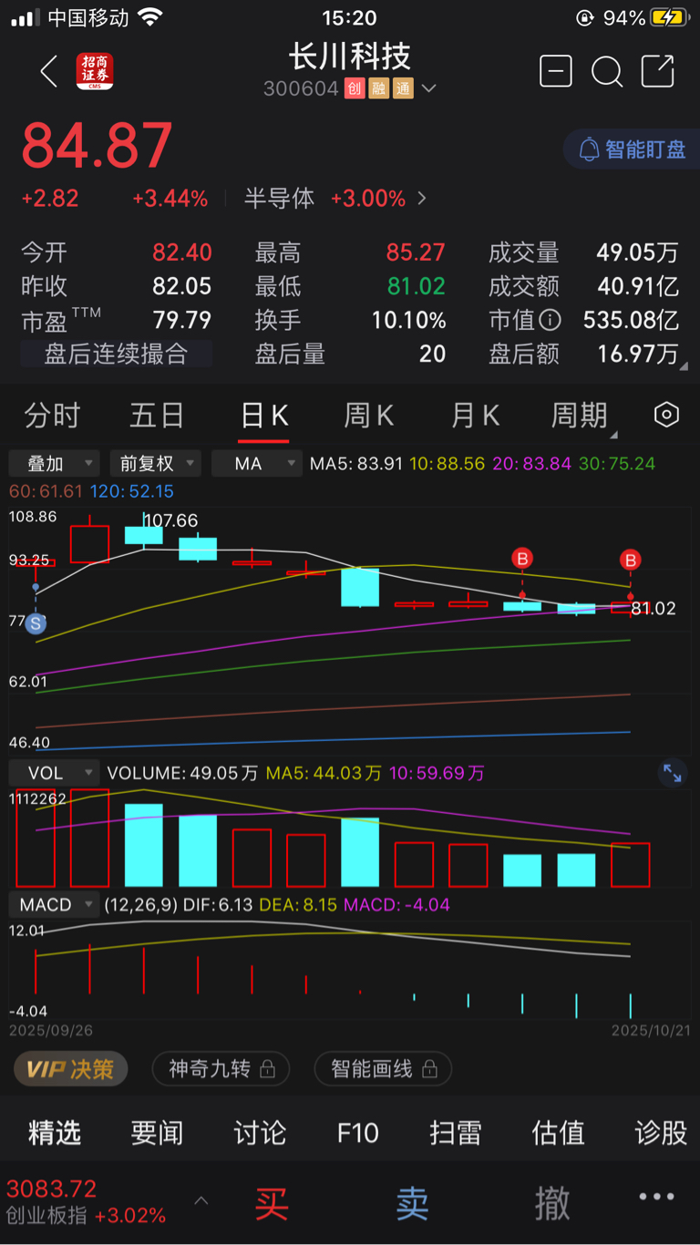 $长川科技(SZ300604)$ 川子,我又来了,这几天你一直在等我吗