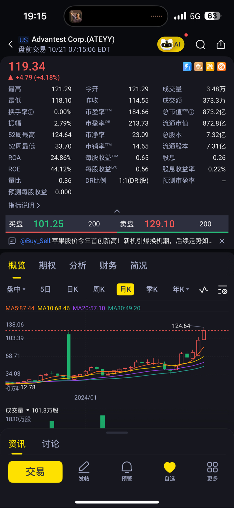 $长川科技(SZ300604)$ 国外测试机龙头确实炒的凶