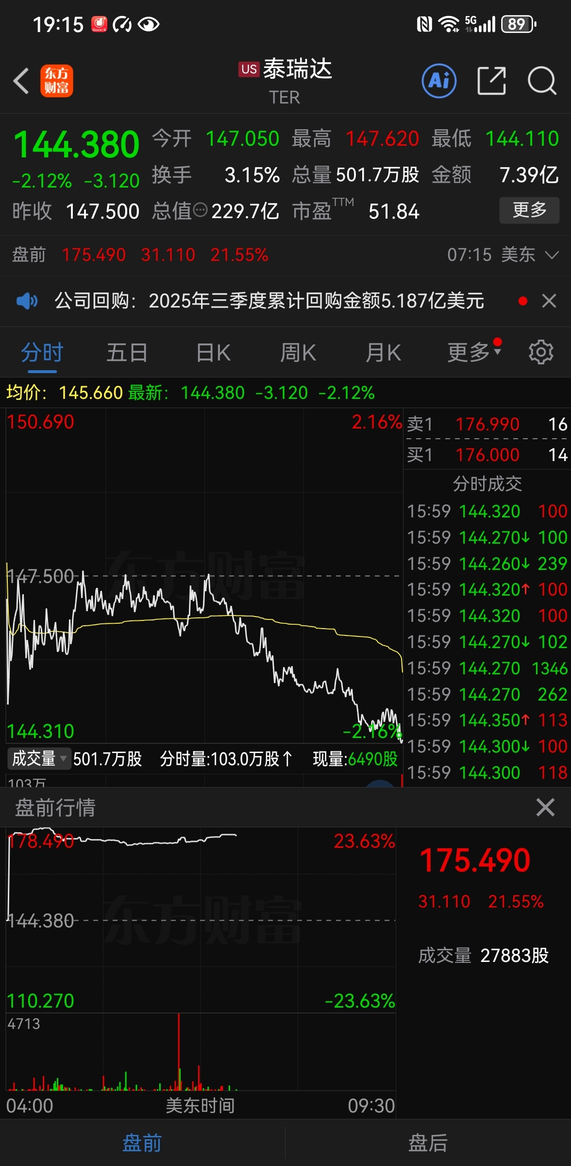 $长川科技(SZ300604)$ 泰瑞达盘前20%+~国产替代不能怂,加油干