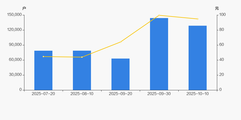 2025年7月20日至今,公司股东户数显著大幅增长,区间涨幅达63.60%。2025年7月20日至2025年10月10日区间股价上涨112.54%。