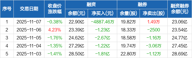 长川科技:连续8日融资净偿还累计12.74亿元(11-07)