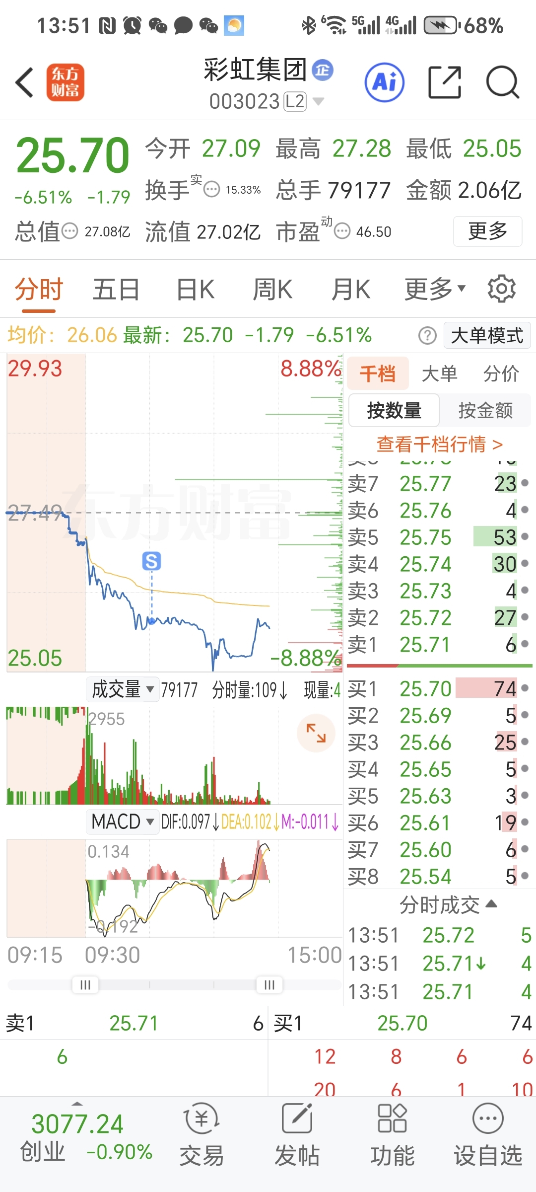 彩虹,你怎么这么对我,我割肉,惨亏5,6个点,妈呀