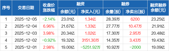 长川科技:融资净买入1.34亿元,两市排名第16(12-05)