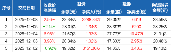 长川科技:连续5日融资净买入累计4.33亿元(12-08)