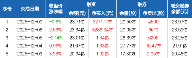 长川科技:连续6日融资净买入累计4.71亿元(12-09)