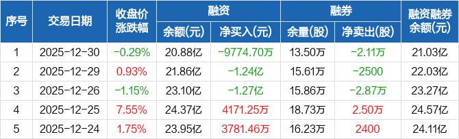 长川科技:连续3日融资净偿还累计3.48亿元(12-30)