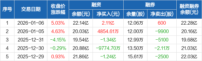 长川科技:融资净买入2.11亿元,融资余额22.14亿元(01-06)