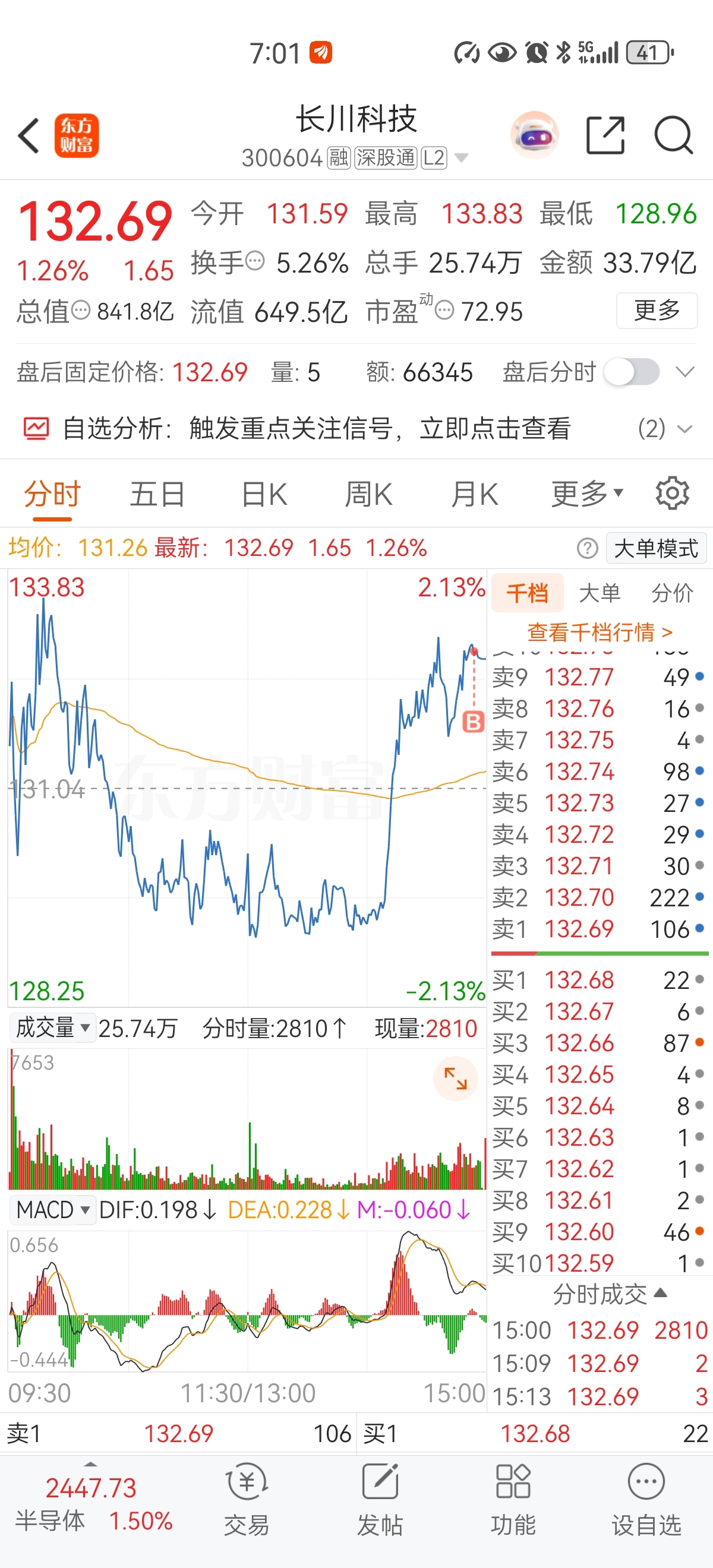 $长川科技(SZ300604)$ 运气不错,大家一起挣点