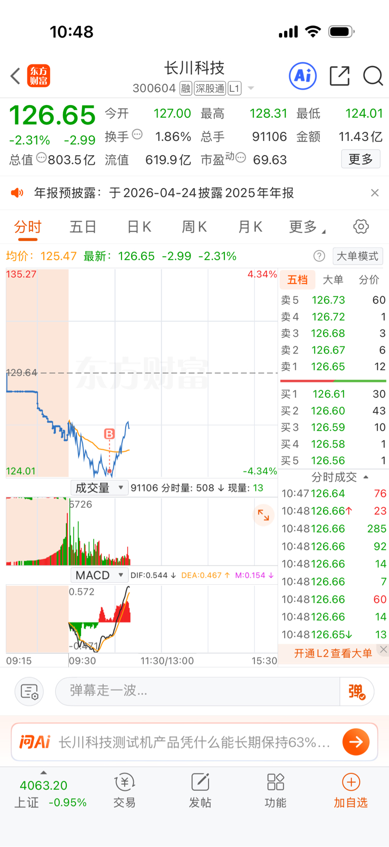 $长川科技(SZ300604)$ 好公司,我会怕你跌?