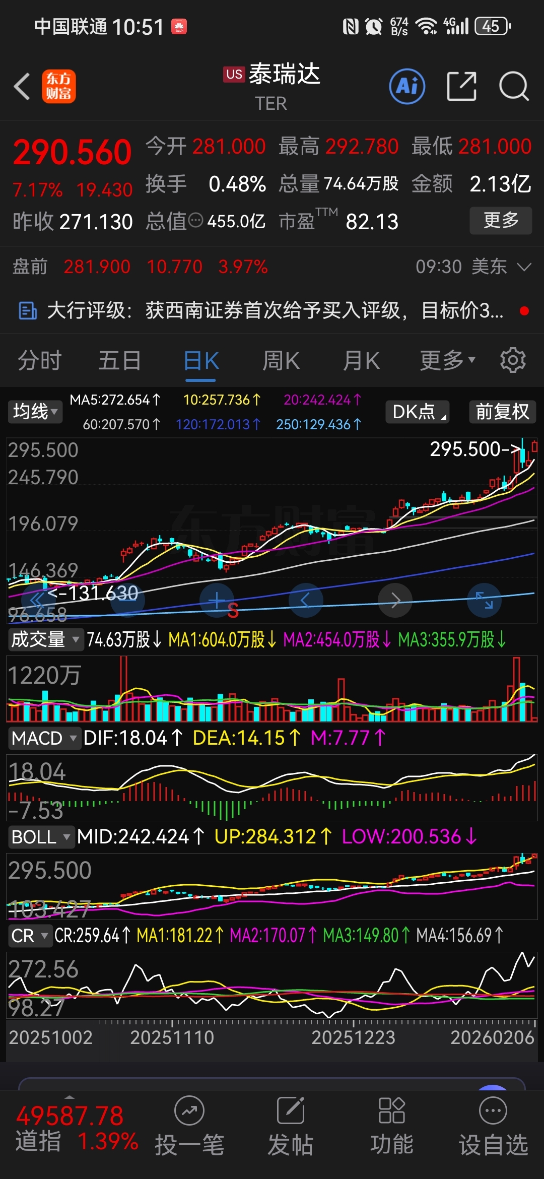 $长川科技(SZ300604)$ 老美科技股今晚大涨啊,看看泰瑞达涨幅达8%。