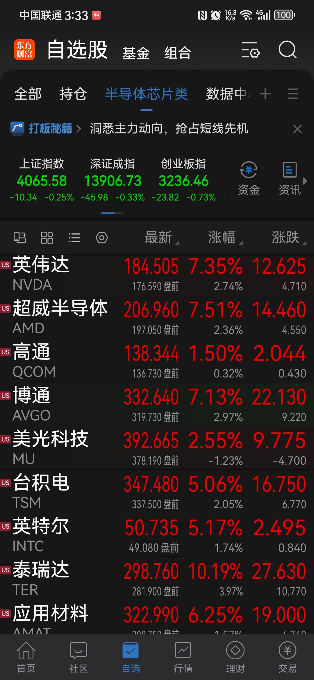 老美科技股今晚大涨啊,看看泰瑞达涨幅达8%。
