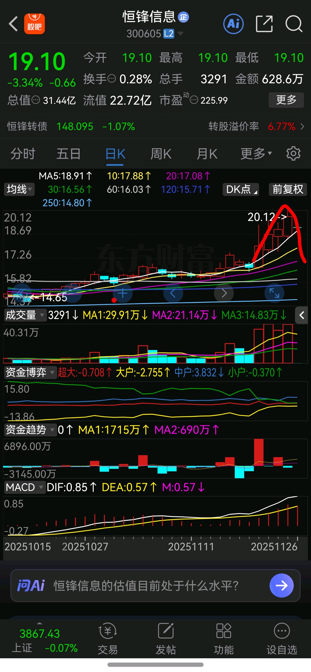 $恒锋信息(SZ300605)$ 连续涨了四天,控盘的大资金做T都已经挣了近30个点,无论后面怎么走,现在都要下跌洗盘了,也是标准走势,最危险时刻就是现在