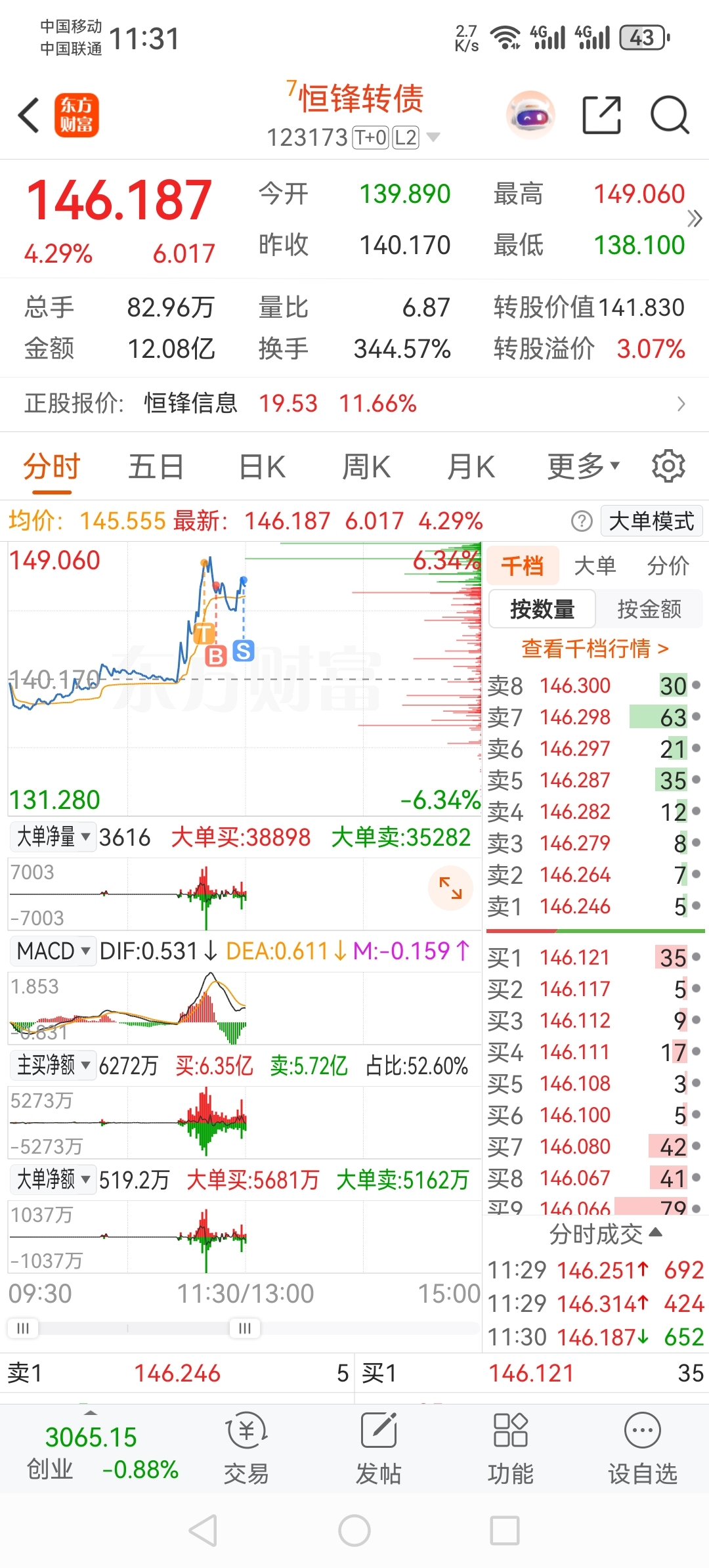 $恒锋信息(SZ300605)$ 想着这票今天回不了17.9的,没想到这么猛啊 看来还是得挂个条件下 恭喜站稳强赎第8天 希望转债下午或明天来个负溢价