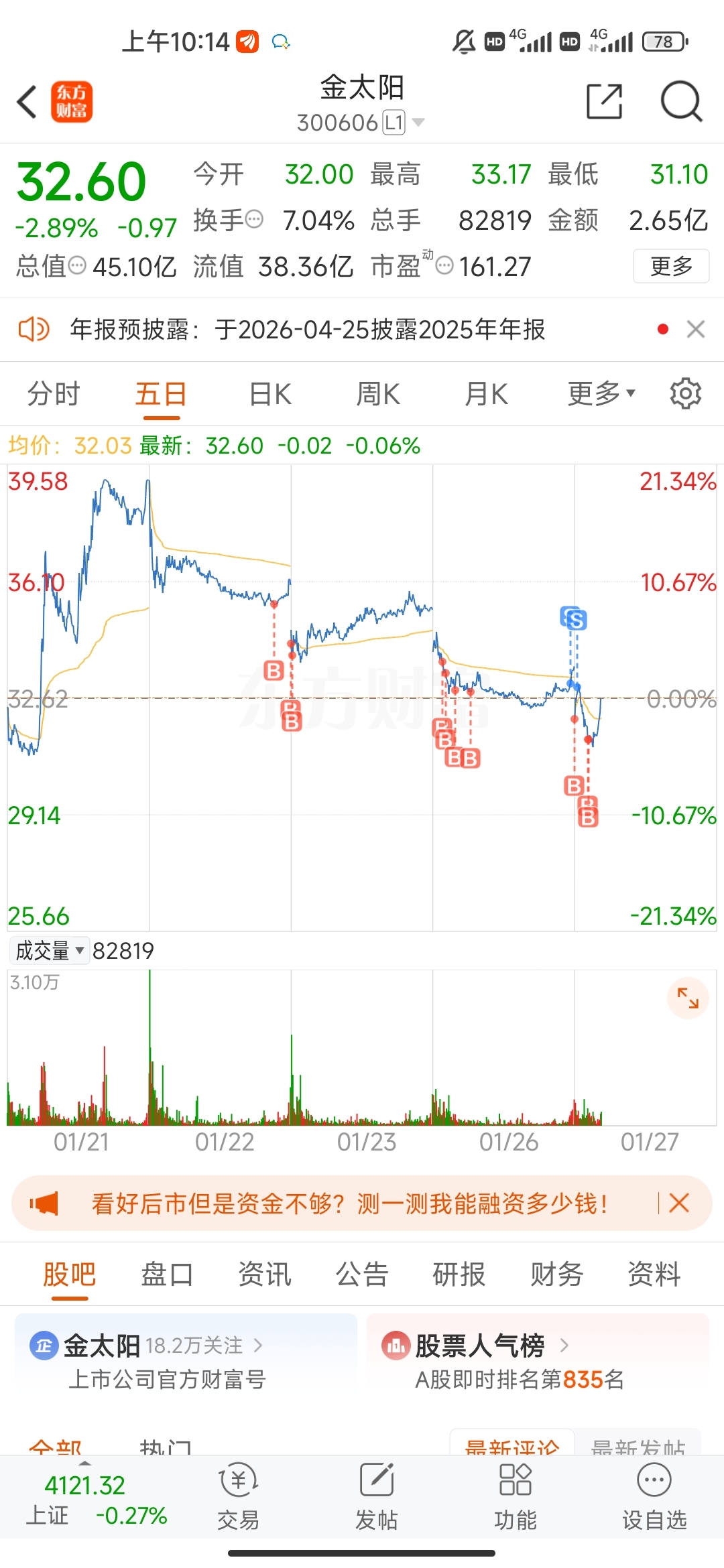 温馨提示: 1.根据《证券法》规定,禁止编造、传播虚假信息或者误导性信息,扰乱证券市场;2.用户在本社区发表的所有资料、言论等仅代表个人观点,与本网站立场无关,不对您构成任何投资建议。用户应基于自己的独立判断,自行决定证券投资并承担相应风险。《东方财富社区管理规定》