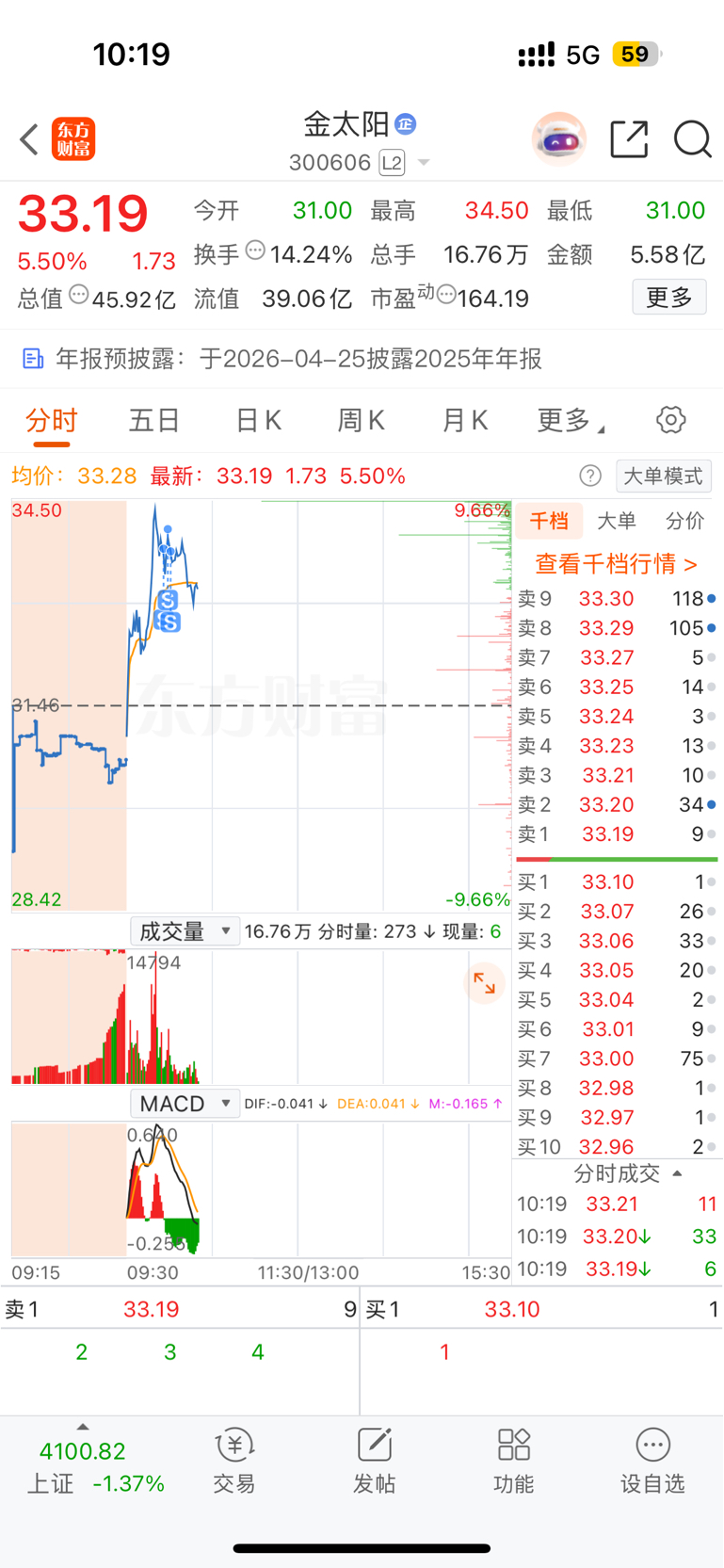 $金太阳(SZ300606)$ 昨天套我五个点谢谢你让我赚钱走